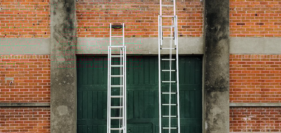 PELCO Extension Ladders are available with the hauling rope system fitted in any of the three common positions: